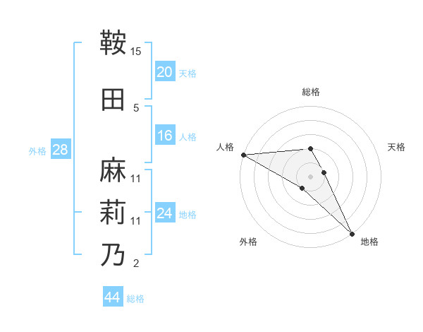 鞍田 麻莉乃さんの総格は44画の2点!