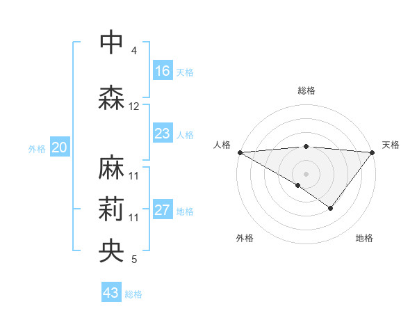 中森 麻莉央さんを姓名の画数から五運を鑑定