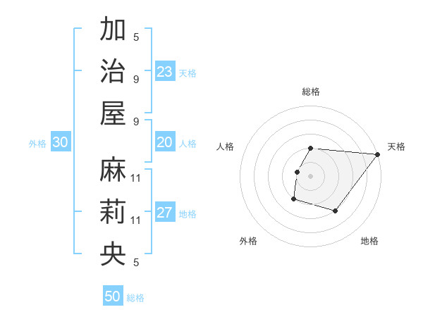 加治屋 麻莉央さんを姓名の画数から五運を鑑定