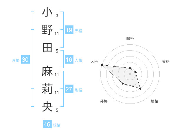 小野田 麻莉央さんを姓名の画数から五運を鑑定