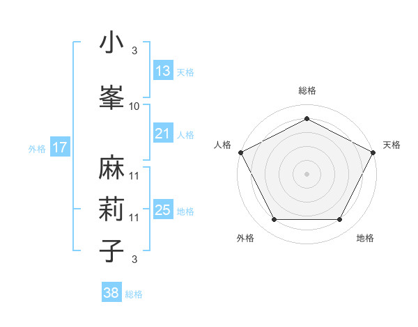 小峯 麻莉子さんを姓名の画数から五運を鑑定