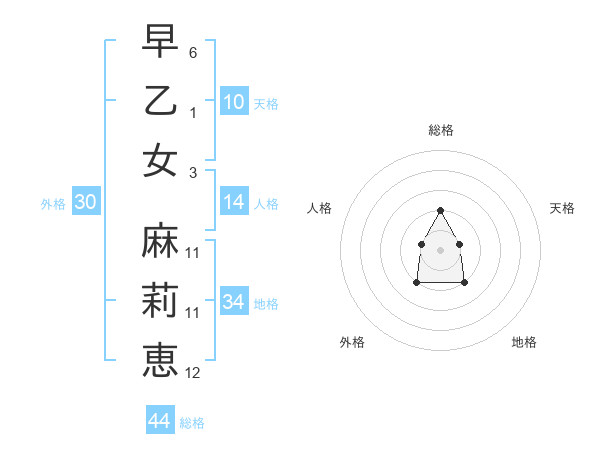 早乙女 麻莉恵さんを姓名の画数から五運を鑑定