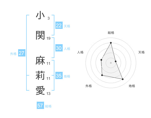 小関 麻莉愛さんの総格は57画の4点!