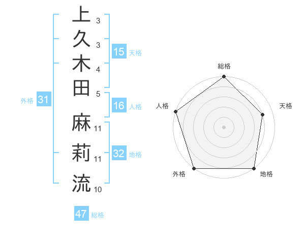 上久木田 麻莉流さんの総格は47画の5点!
