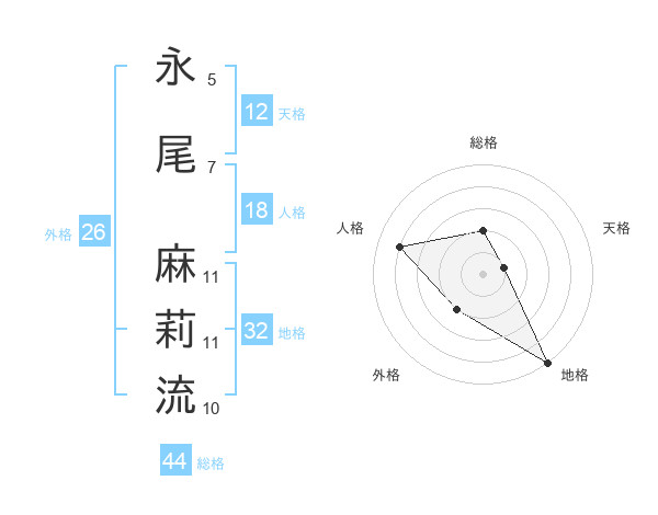 永尾 麻莉流さんの総格は44画の2点!