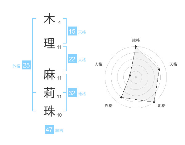 木理 麻莉珠さんを姓名の画数から五運を鑑定