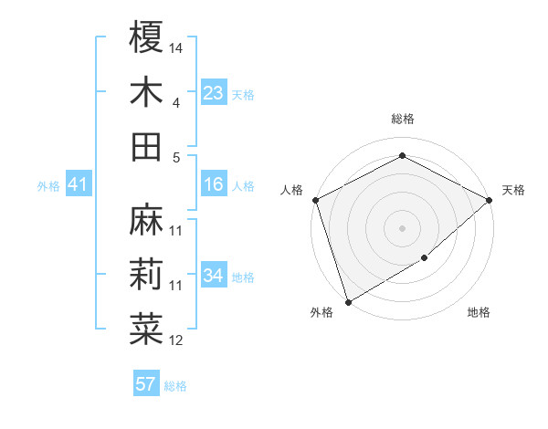 榎木田 麻莉菜さんを姓名の画数から五運を鑑定