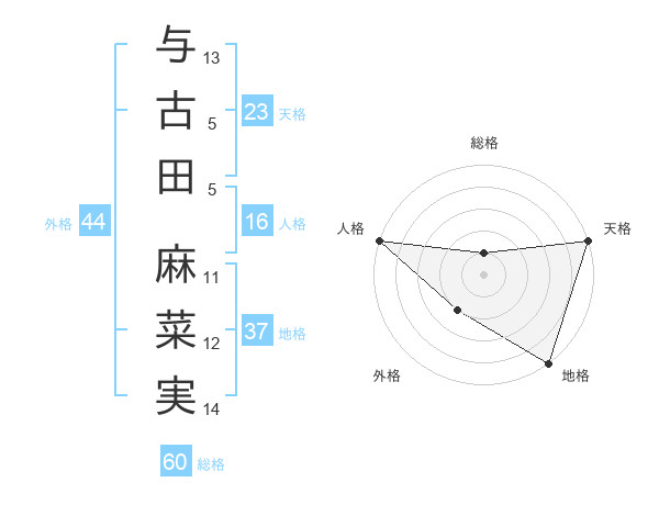 与古田 麻菜実さんを姓名の画数から五運を鑑定