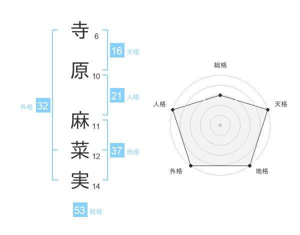 寺原 麻菜実さんを姓名の画数から五運を鑑定