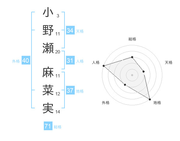 小野瀬 麻菜実さんを姓名の画数から五運を鑑定