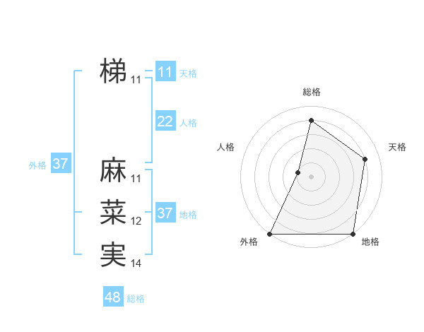 梯 麻菜実さんの外格は37画の5点!