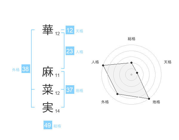 華 麻菜実さんを姓名の画数から五運を鑑定