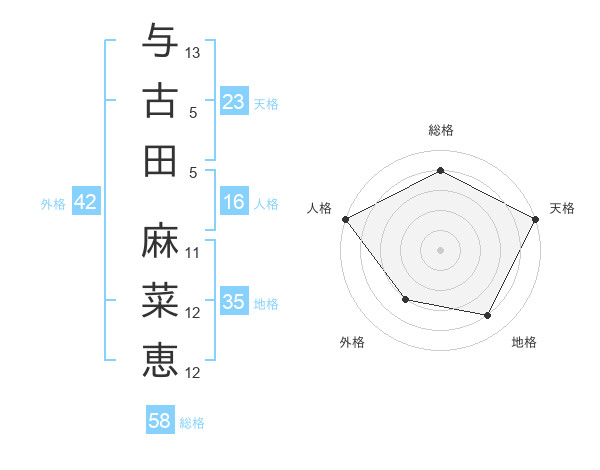 与古田 麻菜恵さんを姓名の画数から五運を鑑定