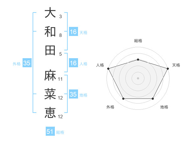 大和田 麻菜恵さんを姓名の画数から五運を鑑定