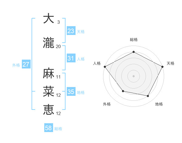 大瀧 麻菜恵さんを姓名の画数から五運を鑑定