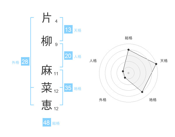 片柳 麻菜恵さんを姓名の画数から五運を鑑定