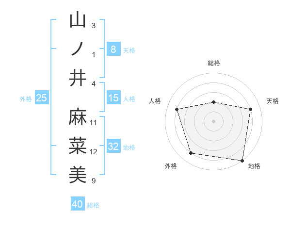 山ノ井 麻菜美さんの天格は8画の4点!