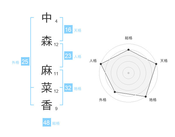 中森 麻菜香さんを姓名の画数から五運を鑑定