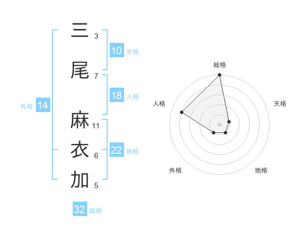 三尾 麻衣加さんを姓名の画数から五運を鑑定