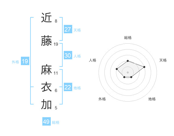 近藤 麻衣加さんの総格は49画の2点!