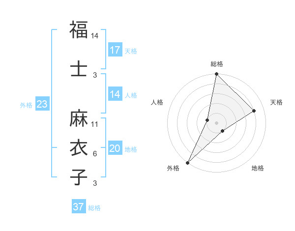福士 麻衣子さんを姓名の画数から五運を鑑定