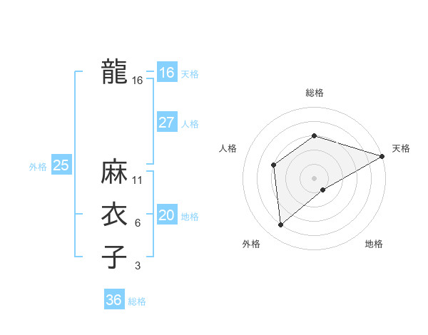 龍 麻衣子さんを姓名の画数から五運を鑑定
