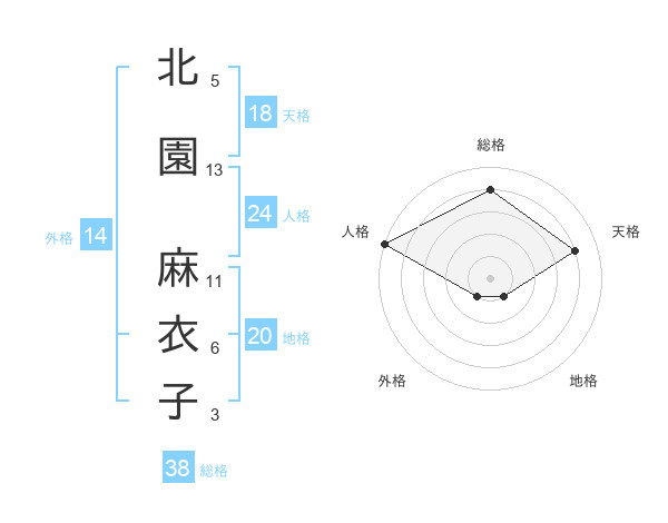 北園 麻衣子さんを姓名の画数から五運を鑑定