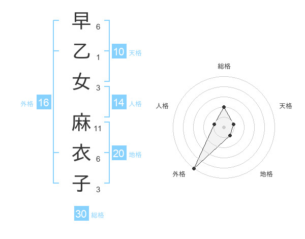 早乙女 麻衣子さんの総格は30画の2点!