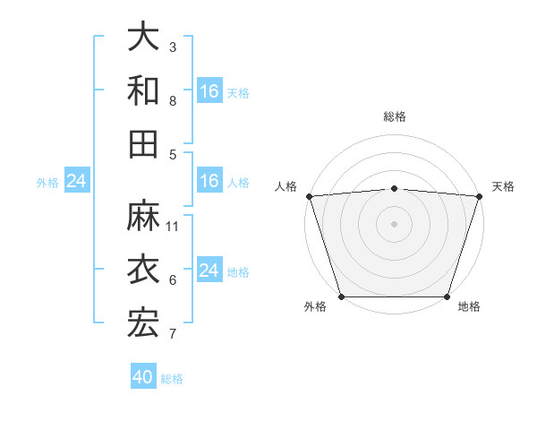 大和田 麻衣宏さんを姓名の画数から五運を鑑定
