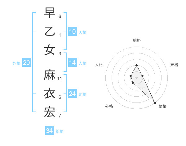 早乙女 麻衣宏さんを姓名の画数から五運を鑑定