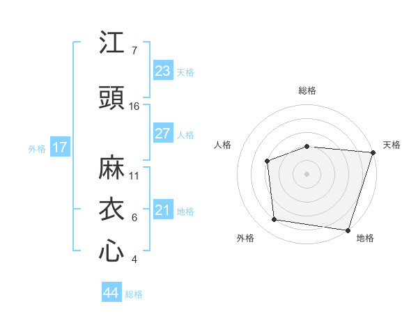 江頭 麻衣心さんの総格は44画の2点!