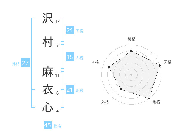 沢村 麻衣心さんを姓名の画数から五運を鑑定