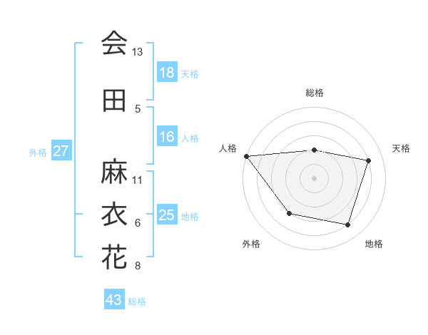 会田 麻衣花さんを姓名の画数から五運を鑑定