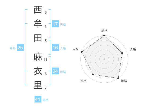 西牟田 麻衣里さんを姓名の画数から五運を鑑定