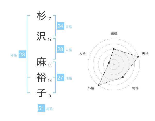 杉沢 麻裕子さんを姓名の画数から五運を鑑定