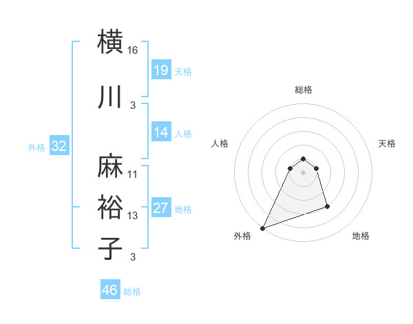 横川 麻裕子さんの外格は32画の5点!