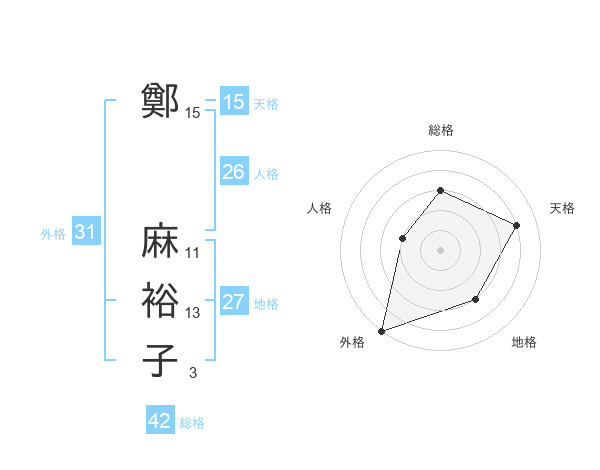 鄭 麻裕子さんの外格は31画の5点!