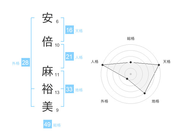 安倍 麻裕美さんを姓名の画数から五運を鑑定