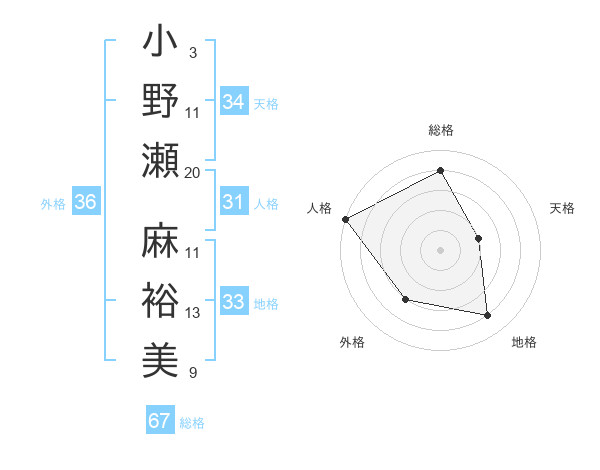 小野瀬 麻裕美さんを姓名の画数から五運を鑑定