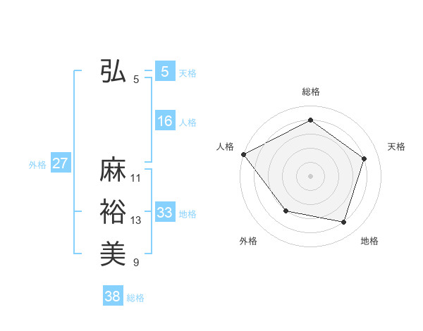 弘 麻裕美さんを姓名の画数から五運を鑑定