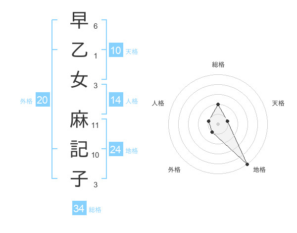 早乙女 麻記子さんを姓名の画数から五運を鑑定