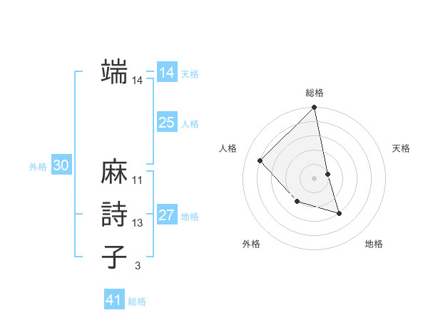 端 麻詩子さんを姓名の画数から五運を鑑定
