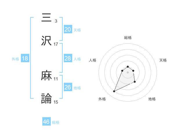 三沢 麻論さんを姓名の画数から五運を鑑定