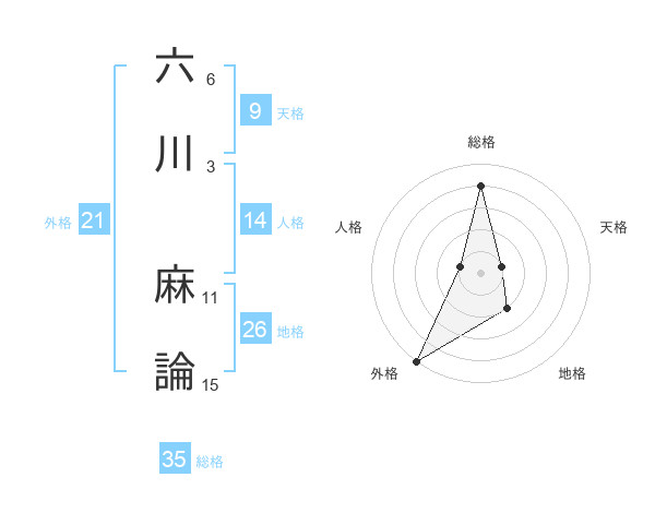 六川 麻論さんの総格は35画の4点!