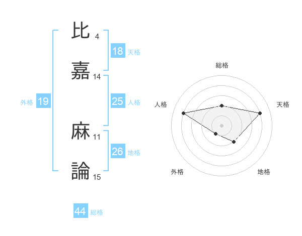 比嘉 麻論さんの総格は44画の2点!