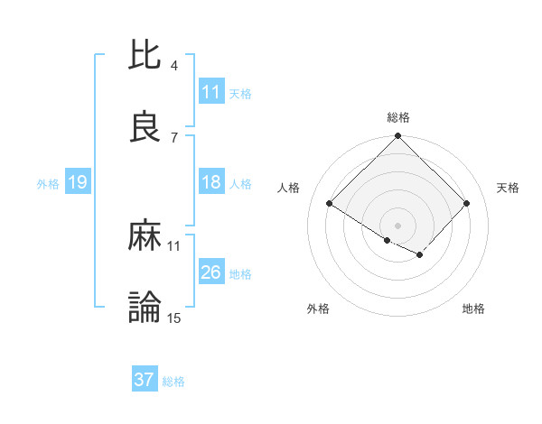 比良 麻論さんの総格は37画の5点!