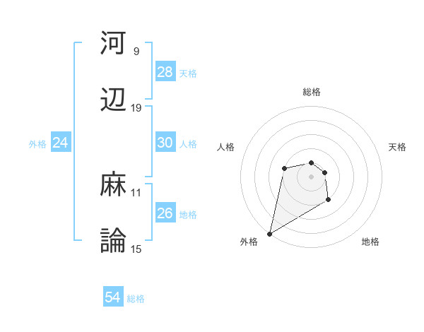 河辺 麻論さんの外格は24画の5点!