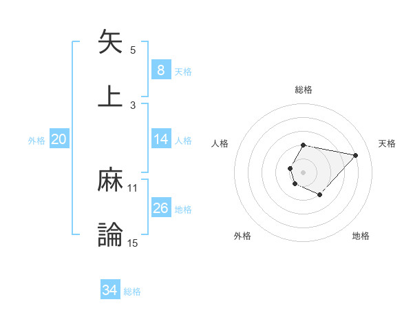 矢上 麻論さんの天格は8画の4点!