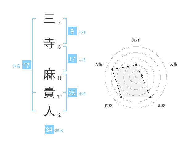 三寺 麻貴人さんを姓名の画数から五運を鑑定
