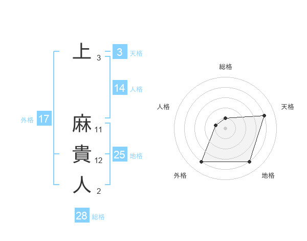 上 麻貴人さんを姓名の画数から五運を鑑定